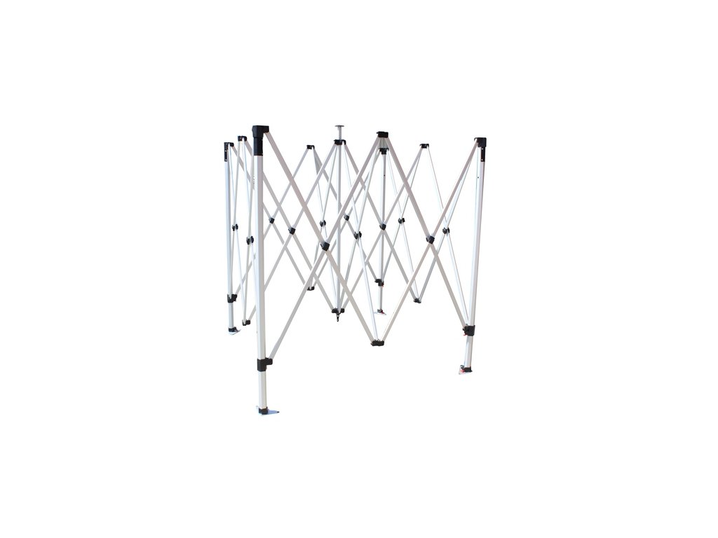 Nůžkový stan se snadno skládá a rozkládá, disponuje pevnou a odolnou konstrukcí z hliníkových profilů, které dominují šestiúhelníkové nohy stanu.