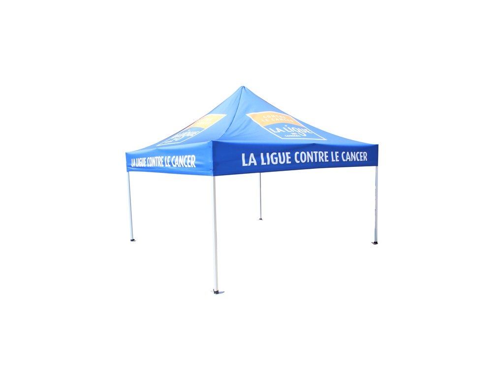 Základní set tvoří konstrukce, která je umístěna v odolném textilním obalu s kolečky pro snadný transport, a dále textilní střecha stanu, kompletně potištěná nebo